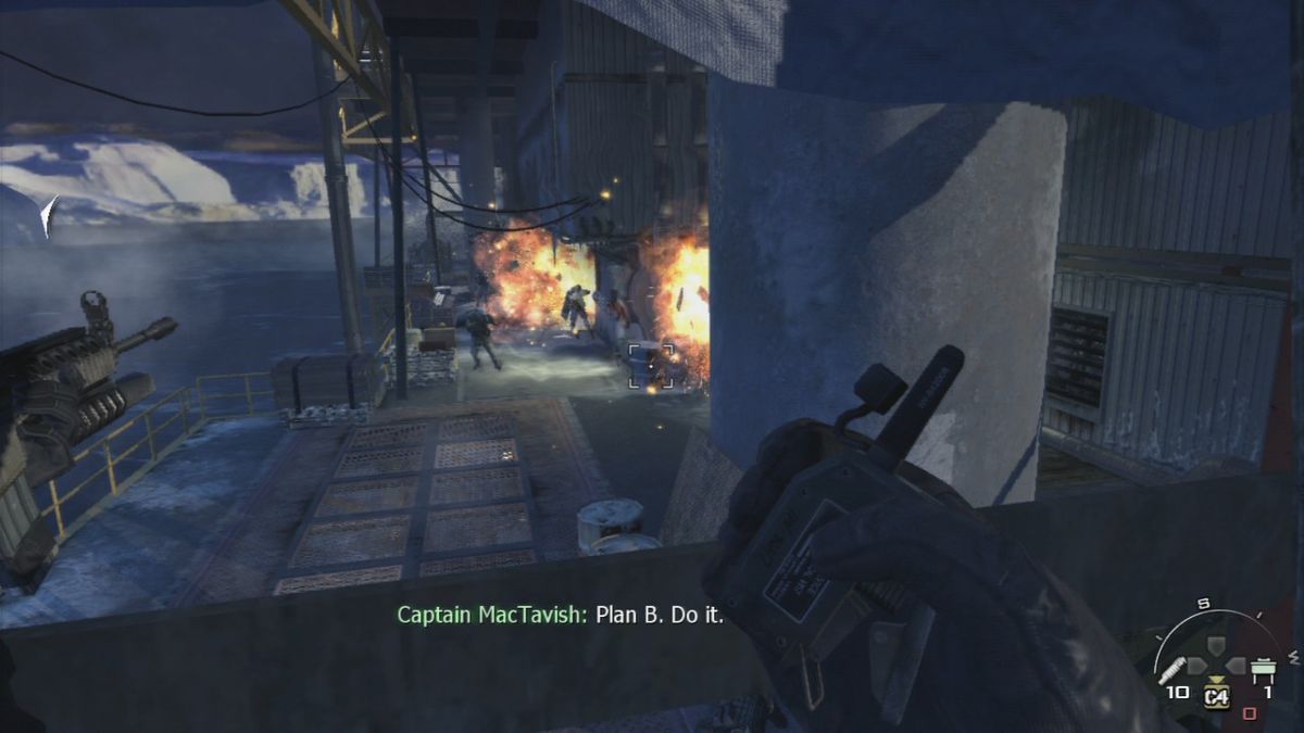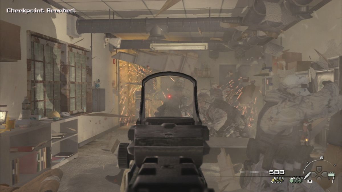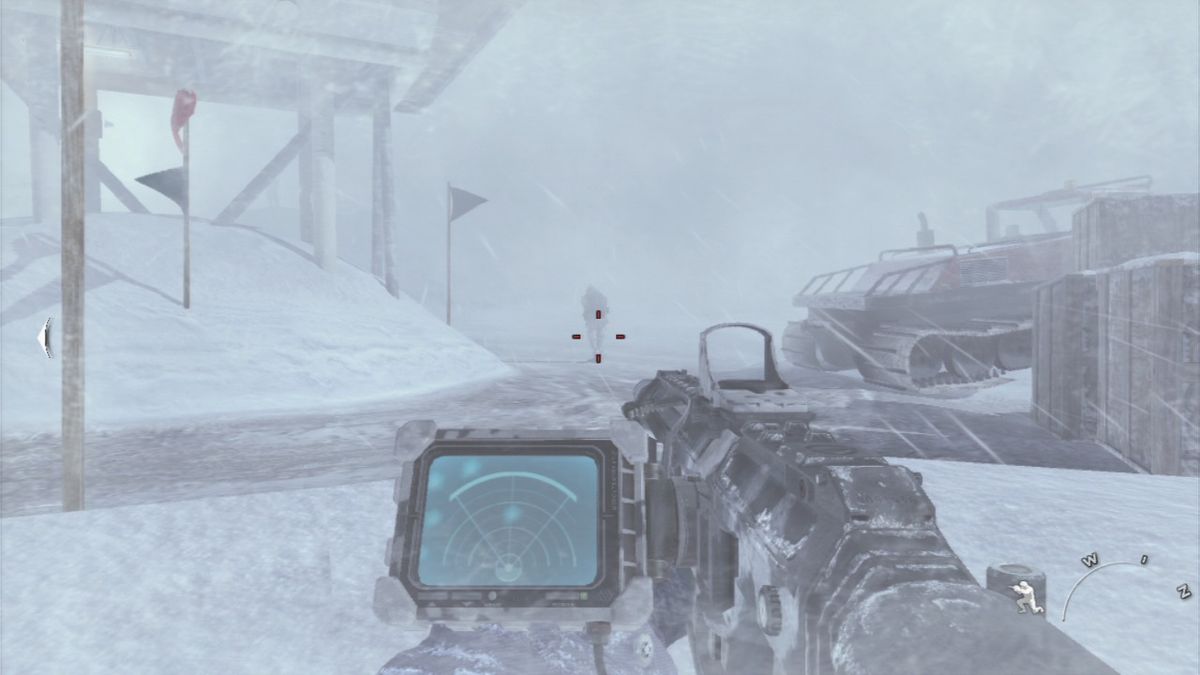 As it's predecessor, Call of Duty: Modern Warfare 2 is a first-person-shooter that provides a fairly linear but heavily scripted and action-oriented single-player-experience. The missions take the player all over the world shooting, sneaking and driving through enemy lines to fulfill his various objectives like blowing up a fueling station. To fight all those hordes of ever respawning enemies, he has access to a large collection of modern-world-weaponry but can only carry two weapons plus grenades at a time.