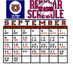 Players select a fictional team from the following groups: National Division West:* San Francisco Quakes, Los Angeles Apaches, Cincinnati Big Cats, San Diego Suns, Houston Mustangs, and Atlanta Condors.