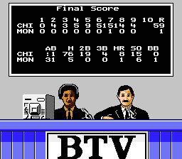 The player can use a password to save their progress in Regular Season mode. An exhibition match can be played in two player mode with the use of two controllers.
