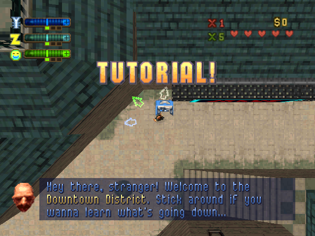 The game takes place at an undisclosed time in the near future. Unlike the first game which featured three different cities, Grand Theft Auto 2 only features a single town, but it's divided in three districts which are unlocked one at a time: downtown, residential and industrial. Like in the original the player goes around answering phones to initiate various missions. The game uses an overhead camera in a 3D landscape and allows the player to freely explore the city and steal any vehicle the player sets his or her eyes on. To unlock new districts the player must reach a certain score which is done by committing crimes and finishing missions.