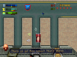 New features include the ability to save at the church, when donating enough money, and various side missions, such as becoming a taxi driver to earn money. There are also many new cars with weapons attached such as a firetruck with a flamethrower and a car with machine guns.