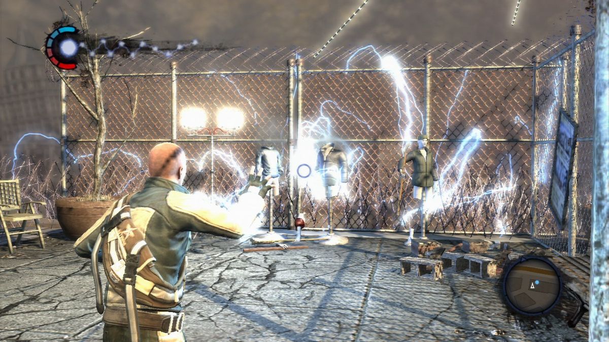 The game can only be played in a single-player story mode, where Empire City is fully explorable. A karma meter shows how many good and bad deeds have been done. Experience points gained in combat and upon completing tasks can be spent on improving Cole's control over his electric powers, where some improvements are only available with a certain amount or positive or negative karma. Relying on electricity for health and powers, Cole needs to recharge himself wherever he can find an electric current, which is made more difficult by the occasional power outages happening in different areas of the city.