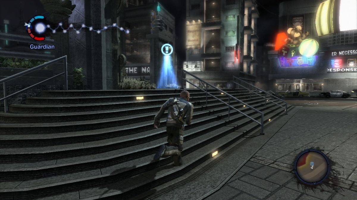 inFAMOUS is an action game taking place in a free city environment. It takes a different approach to comic book style games by not giving players control over a powerful superhero, but having them fill the role of a regular guy who is just starting to discover his supernatural abilities. Through their actions, they are able to decide whether Cole will become a hero that the inhabitants of the city admire and look up to, or a selfish man who fights for his survival and that of his friends, even if it means the death of others. When encountering Cole in the streets, citizens react according to his reputation.
