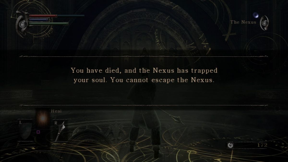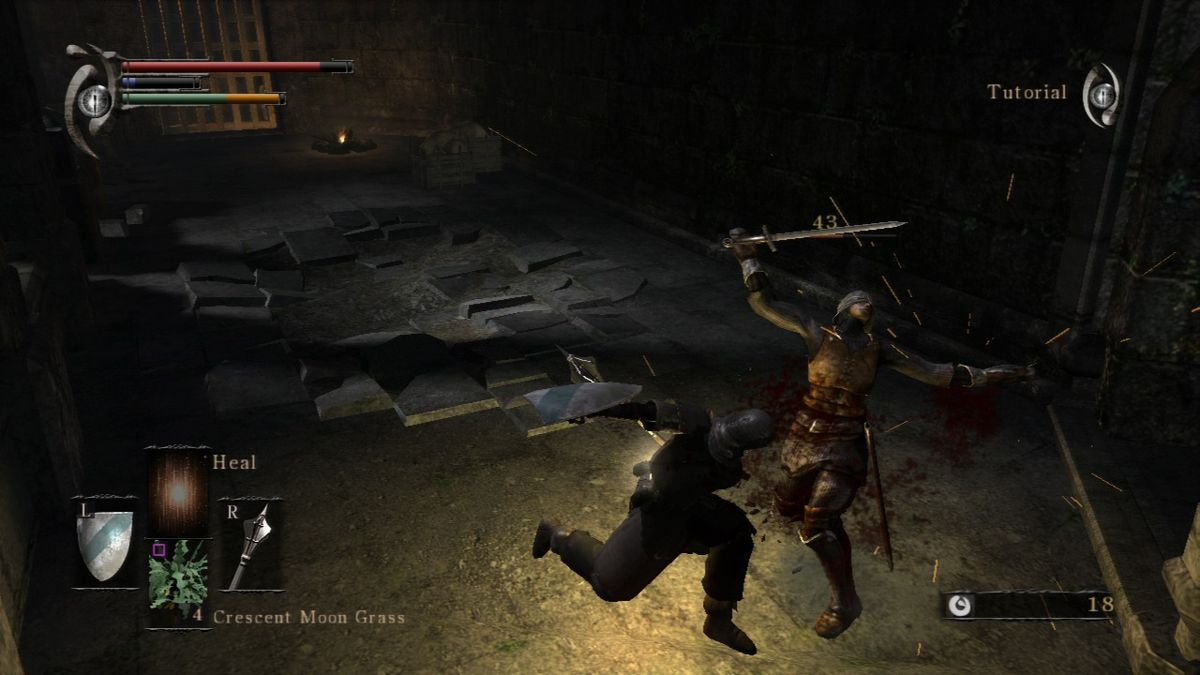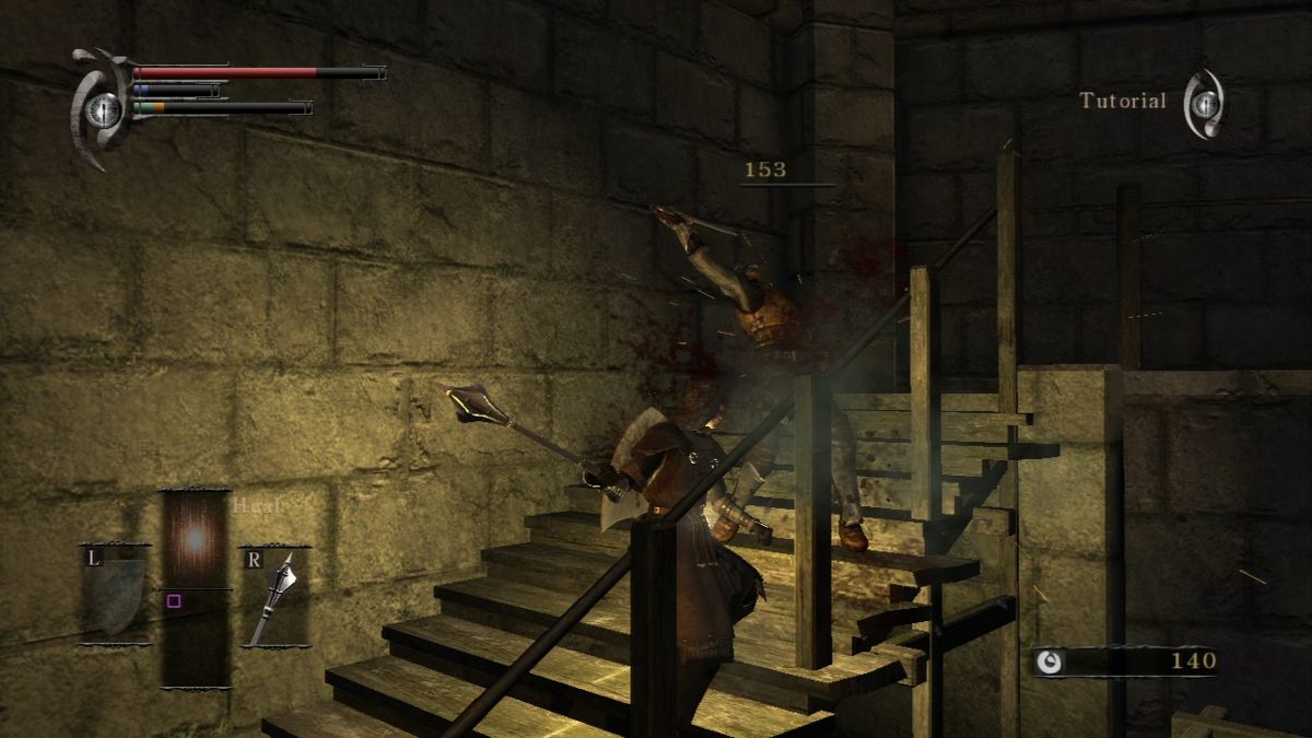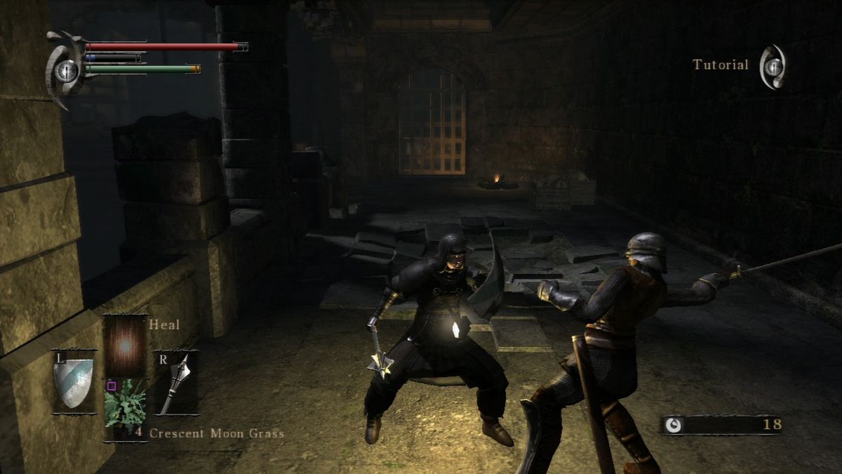 During combat, the player has to watch the protagonist's stamina bar, which decreases with physical movements like attacking, evading or blocking. Death does not end the game: once the hero dies he respawns in soul form. This means that his health is reduced, but he can do more damage against foes. Every time the protagonist dies he loses all the collected souls. However, these can be regained by touching the spot where the character lost his life.