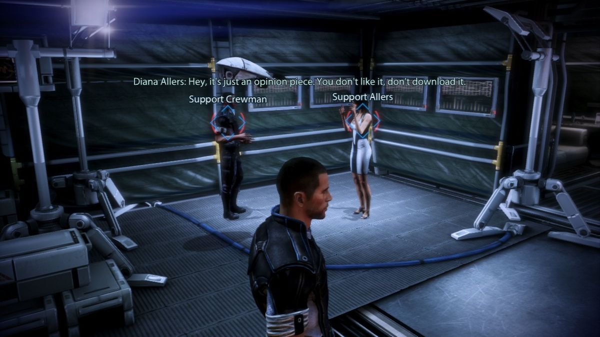 In addition to combat difficulty selection, the player is offered a choice of three modes before starting the game. The "action" mode bypasses conversation choices, displaying them as non-interactive cutscenes; the "story" mode keeps choices intact, but lowers combat difficulty. The "role-playing" mode reflects most closely the gameplay of the two previous games, containing both choices and more challenging combat.