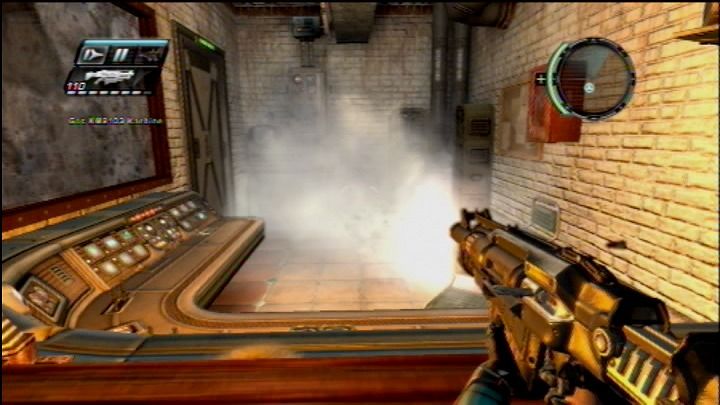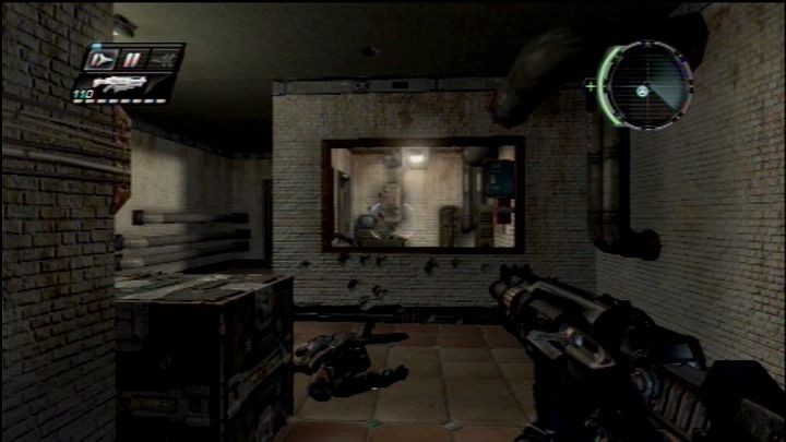 Fight your way through hordes of enemies with futuristic, but also conventional weapons like pistols or shotguns. Your suit isn't rendered totally useless. It still allows you to slow down, rewind and forward time for a short period. This not only allows you to overcome obstacles like fire but you can also trick your enemies. Players can slow down the time and then steal the weapon out of the hand of an enemy - if he hasn't a too strong grip on it. This feature is also used for small time-related puzzles.