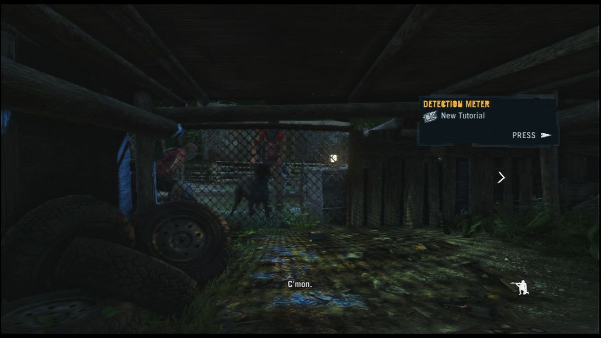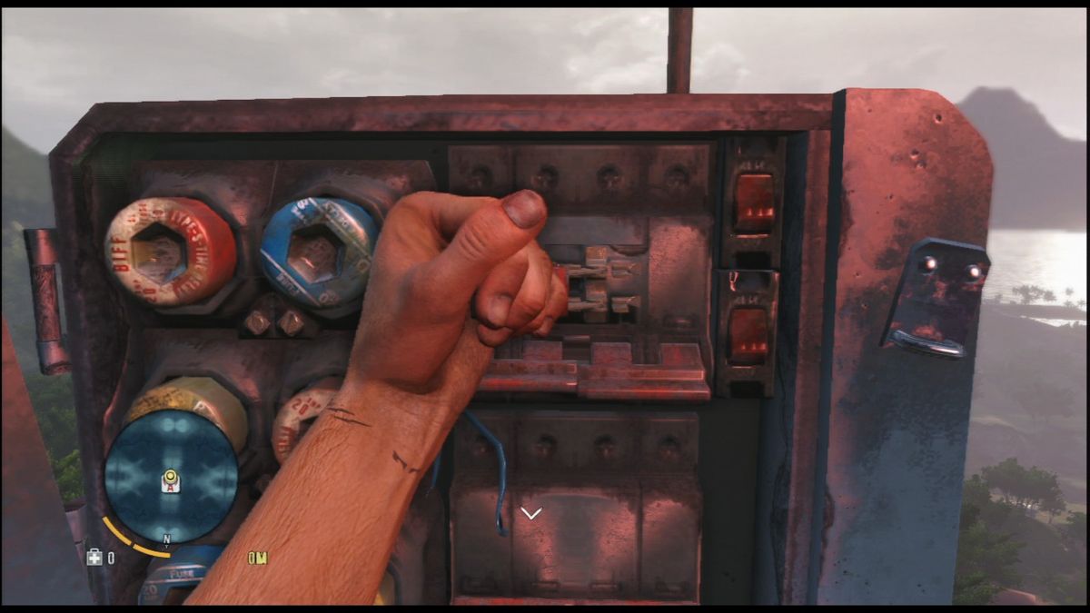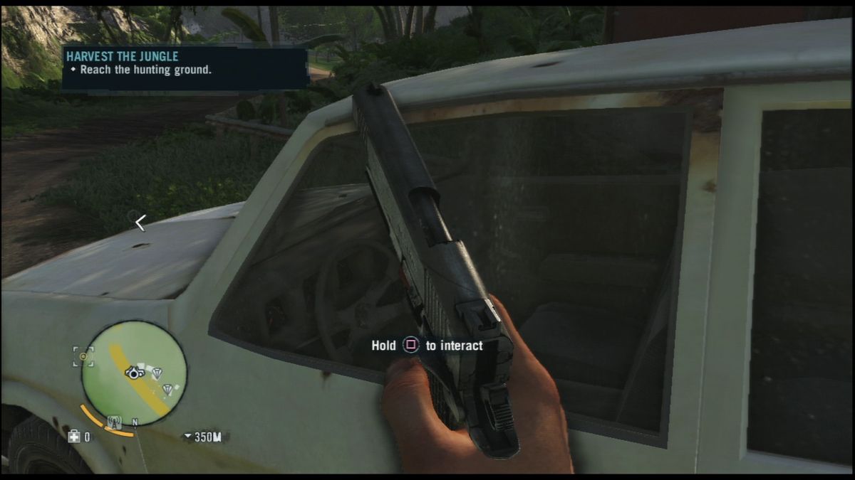Even though it is a shooter with machine guns, assault rifles, hand guns, bows, flamethrowers, mines, RPGs and grenades, almost all of the game can be played with a stealth approach. Jason can crouch and hide in the foliage to remain hidden. A meter shows how visible he is to opponents. By sneaking up on them stealth takedowns with a knife can be performed and bodies can be dragged away. He can also throw rocks or use sounds to isolate pirates. His camera is used to zoom in and mark opponents. Once they are marked they remain visible through an outline even when there are walls or objects in the way, helping to track movement. The same can be done with animals. Moving around is done by foot, but there are also different vehicles such as cars, jeeps, quads, boats, jet skis and paragliders along with zip lines and swimming to move more quickly.