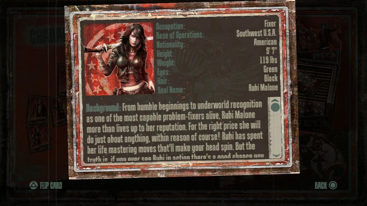 Rubi Malone calls herself a problem solver. Others would call her a mercenary. For enough money she does what she's told without asking questions and going over corpses to reach her goals. But one day a guy called Robert Pelham has the guts to double-cross her - a huge mistake. Mad as hell she goes out on a search for vengeance, traveling over several continents and going through hordes and hordes of minions. The whole game is envisioned like a Grindhouse movie with scratches all over the screen, missing scenes, a high amount of blood and gore and a high focus on staged action scenes.