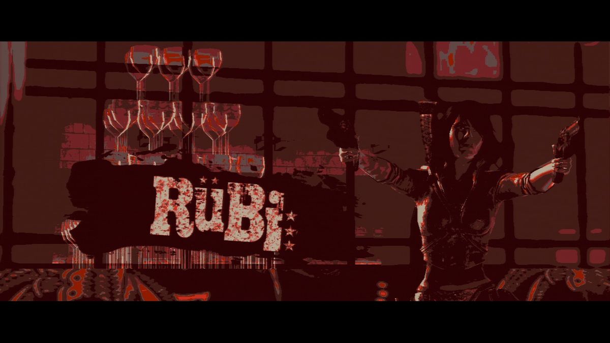 Besides the normal combat and the action/adventure-like climbing and jumping exercises in-between, there are simple quick-time events for bossfights and other scripted events and the so-called Rage-mode. At certain, pre-defined points in the game, Rubi kills an enemy at close range and gets blood all over her face. This drives her mad and turns the realistic graphics into a red-black-white cartoon-style world. During rage-mode, Rubi is nearly invulnerable, is faster and hits harder - but also has to deal with many many more enemies. Once the player has finished the game, additional difficulty settings are unlocked including an arcade-mode where each enemy can only take one bullet and Rubi also has considerably less health. In addition a points-mode, in which the player can select each level of the story-mode and try to beat their highscore, and Rubi's home are unlocked. At Rubi's home, an abandoned plane-graveyard, several different challenges await the player like getting from A to B in the fastest time possible, or shooting targets for points.