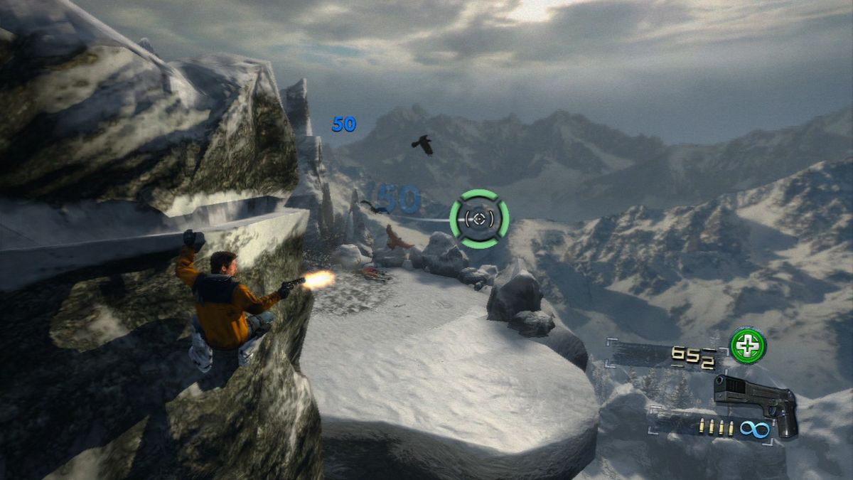 The action-adventure aspects of the game come in the form of God of War-style cliff-climbing sequences, searching out collectible objects (like map pieces), dog sledding, and action-heavy battle sequences against various North American predators.