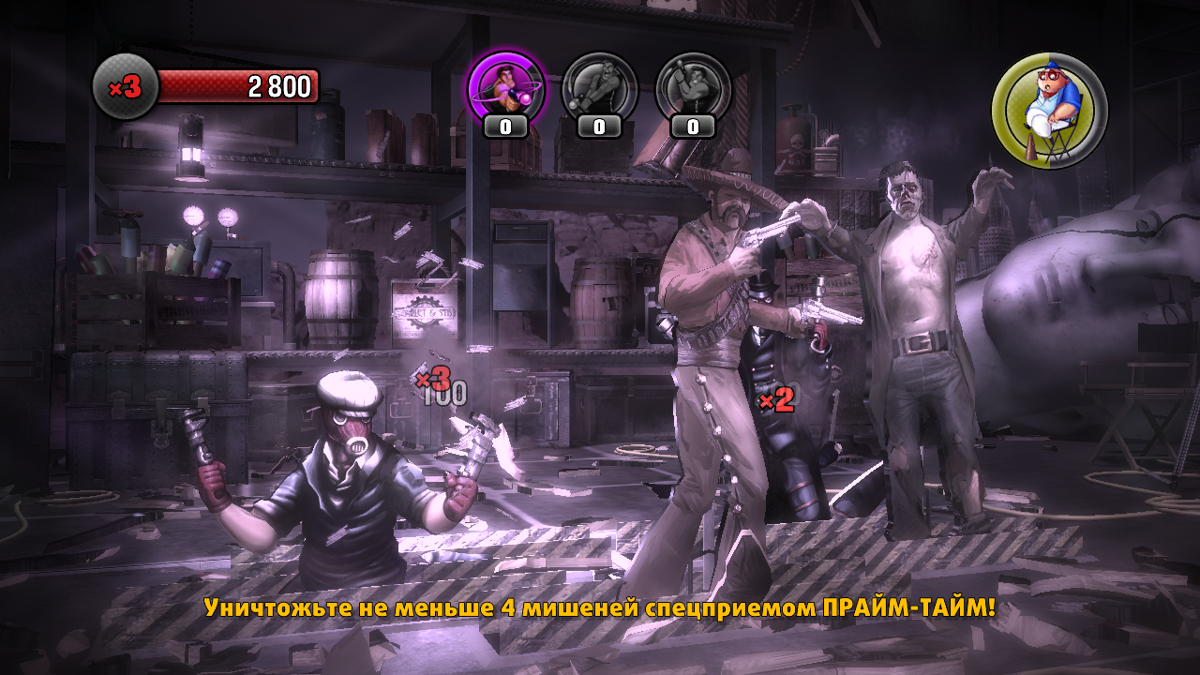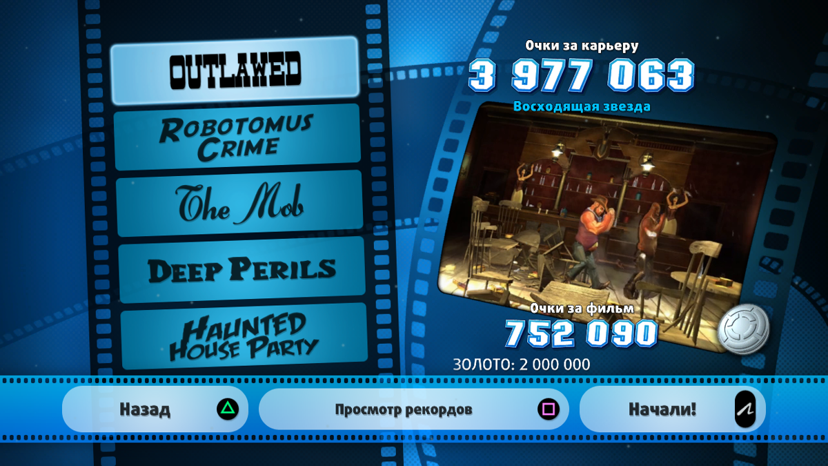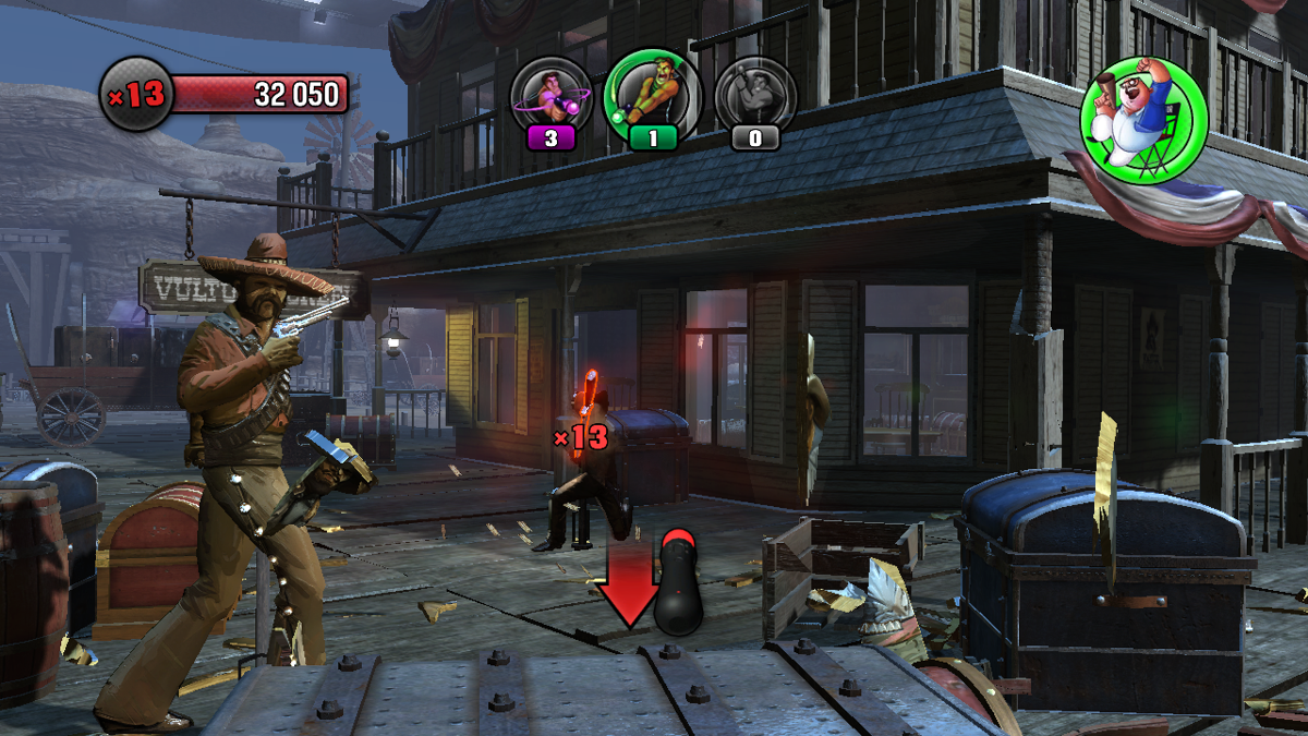 The game features five movies, all spoofing different movie genres, such as Horror and Westerns. Throughout these movies the protagonist is tasked with defeating enemies, freeing the civilians and putting on the best possible performance by activating motion-based power-ups. The player can shoot into the floor to send out a shockwave to vanquish all enemies on the screen. It is also possible to spin on the spot to slow down time and get a more accurate shot. Shooting into the sky activates Rampage, a powerful machine gun.