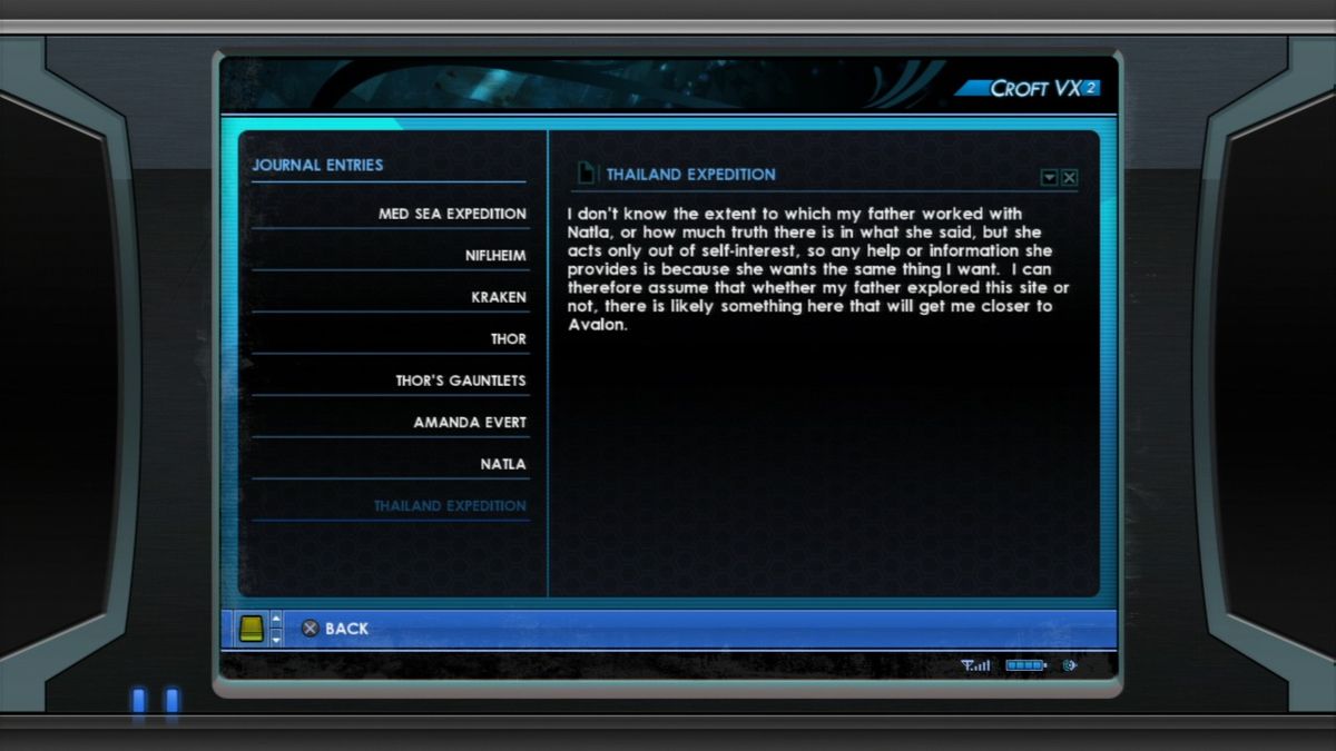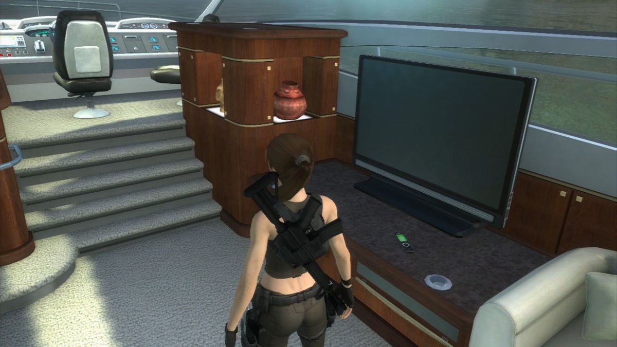 To help the players with the riddles, the game not only features a sonar map, showing Lara's immediate surroundings as a 3D grid for better orientation around the levels. Also, if asked, Lara gives general but helpful tips on what to do next.
