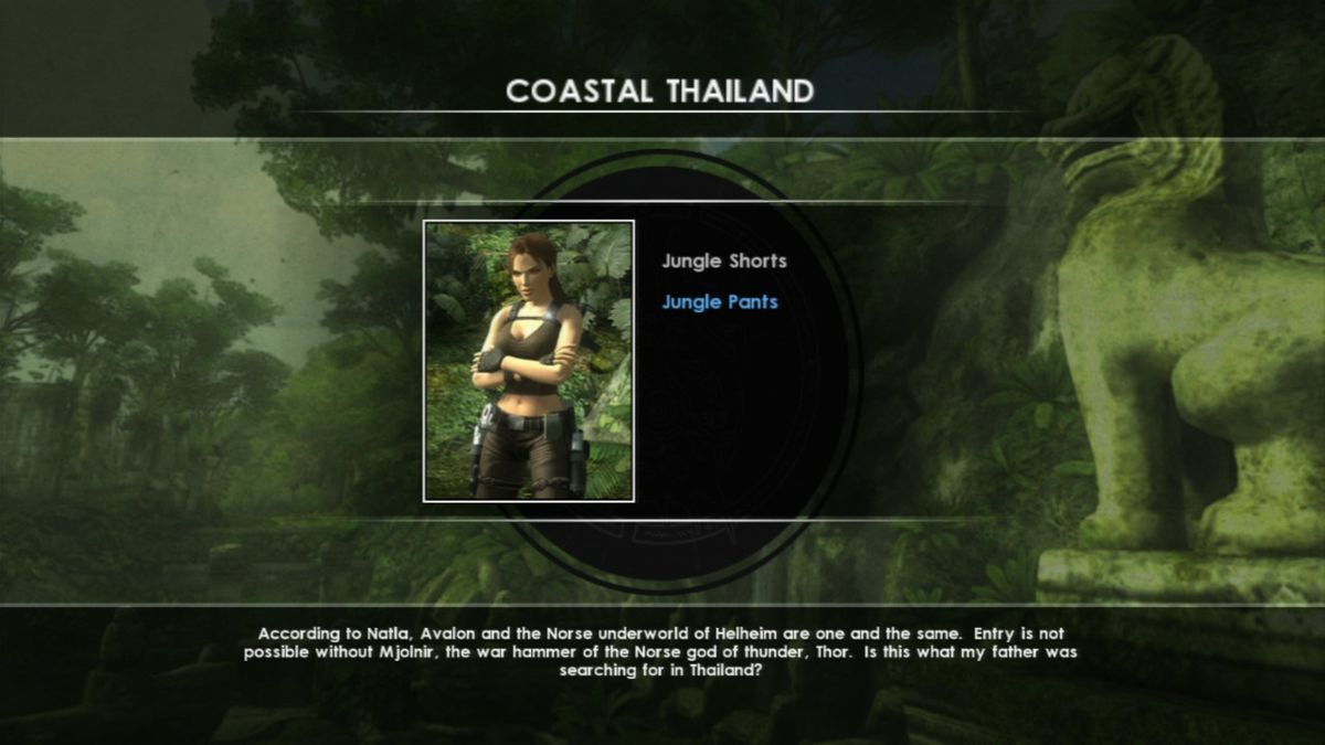 Tomb Raider: Underworld concludes the story of Lara's search for her mother who is supposedly trapped in a place called Avalon. Continuing the events from Lara Croft Tomb Raider: Legend and Lara Croft Tomb Raider: Anniversary, her search brings her once again to locations around the globe from the cold wastes of the Arctic to the beautiful landscapes of Thailand. This time even the bottom of the Mediterranean Sea is not save from Lara's exploring. At the same time the game continues to explore the idea of monomyth, this time incorporating the influences of the Norse mythology into its narrative.