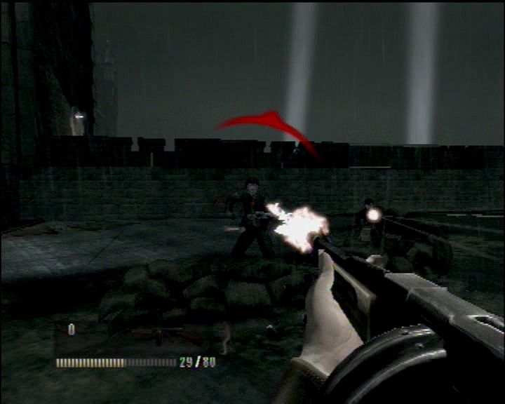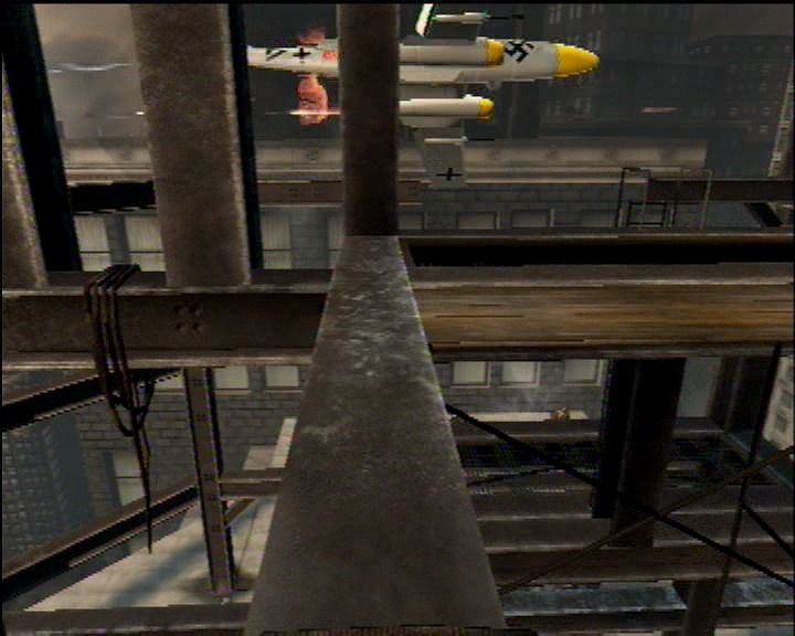 Many advanced WWII weapons appear, including some that were under research, and some that never appeared. There are super-heavy tanks such as the Panzerkampfwagen VIII Maus and Landkreuzer P. 1000 Ratte, and also the Nachteule troop-transport zeppelin, the Flugzeugträger aircraft-carrier zeppelin, as well as various advanced jet fighters and bombers, all used by the German invasion force. Multiplayer is available in standard deathmatch and team deathmatch modes on 4 maps, with Nazi soldiers versus the American Resistance to a maximum of 8 players.