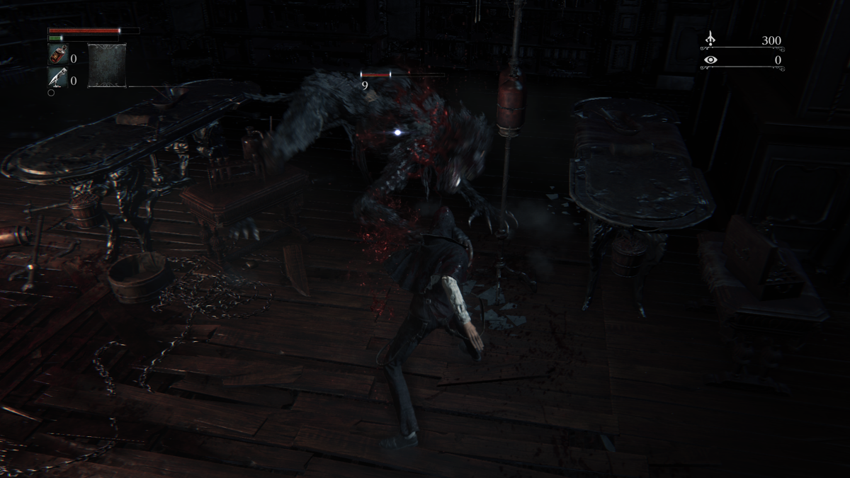 Gameplay for combat, movement and exploration is largely similar to the Souls games. The weight statistic has been removed, there is less focus on defense and spells, and more on dodging. Rather than holding down a button, dodging is now an active and timing-based skill. The stamina bar is now more forgiving for multiple actions in succession. The amount of gear is more limited and the statistics are downplayed in favour of fighting skills for specific weapons. The main-hand weapon is generally melee while the off-hand usually holds a firearm mainly for combos and to riposte counter. An aggressive approach is rewarded through a new Regain system where certain attacks are rewarded with health after being hit, removing the need to run away and heal before continuing the fight. Generally, health is restored through vials (found or purchased), replacing flasks in the previous games. Through the Insight stat enemy placement and attacks are influenced. Reaching a certain level also often brings new elements into the game world and changes how the world reacts to the protagonist. Some enemies are able to absorb souls, forcing you to reclaim them. Insights is also used as a currency to buy special items and are required to summon other players. Next to the main weapons, there are ten trick weapons, very powerful ones that have two forms that can be switched on the fly.
