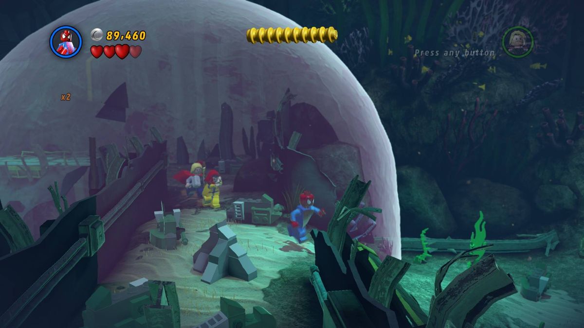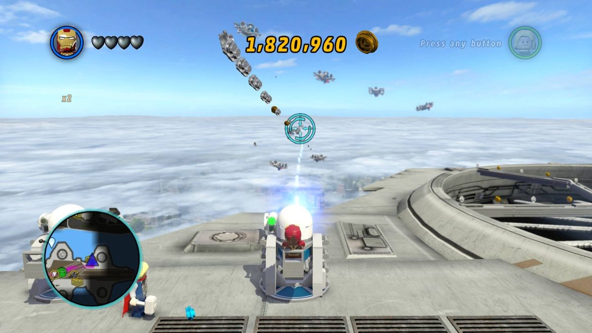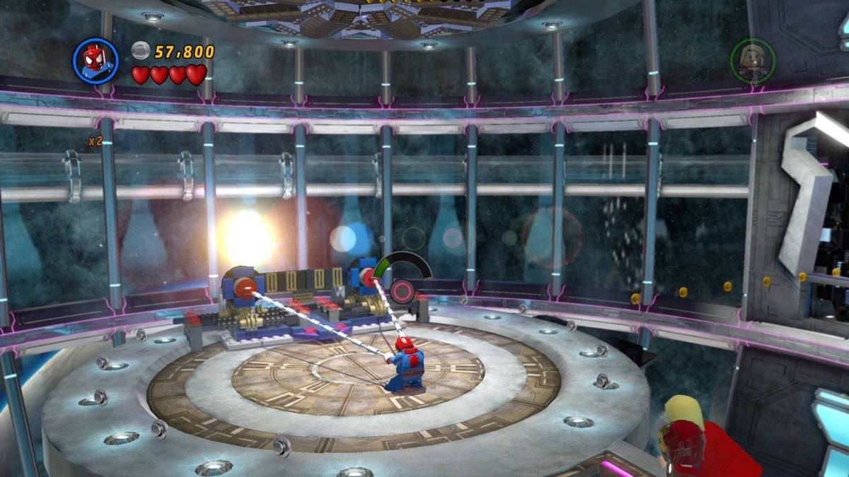 At the beginning, available playing characters are Iron Man and Hulk, soon joined by Spider-Man. Other characters are made available by advancing in game, and other ones by collecting Gold Bricks. Gold bricks can be found exploring Manhattan, completing side quests there, as well as story mode levels: by them, additional characters are unlocked as well as bonus levels. Extra outfits and vehicles are obtained retrieving Character tokens and Vehicle tokens in Manhattan. Other collectibles are Minikits, Deadpool bricks (by which some power-ups and extra features are obtained). Some characters are available through purchase of the Super Pack and Asgard Pack DLCs (the former ones, taken from Marvel's film Thor: The Dark World were available as pre-order bonus, also), purchasable on Xbox LIVE, PS Store and PC. Playable characters total to around 150, more than 100 needing to be unlocked. They all have their own Super Powers, regarding possibility of interaction with the environment, and Super Moves, regarding how enemies can be beaten.
