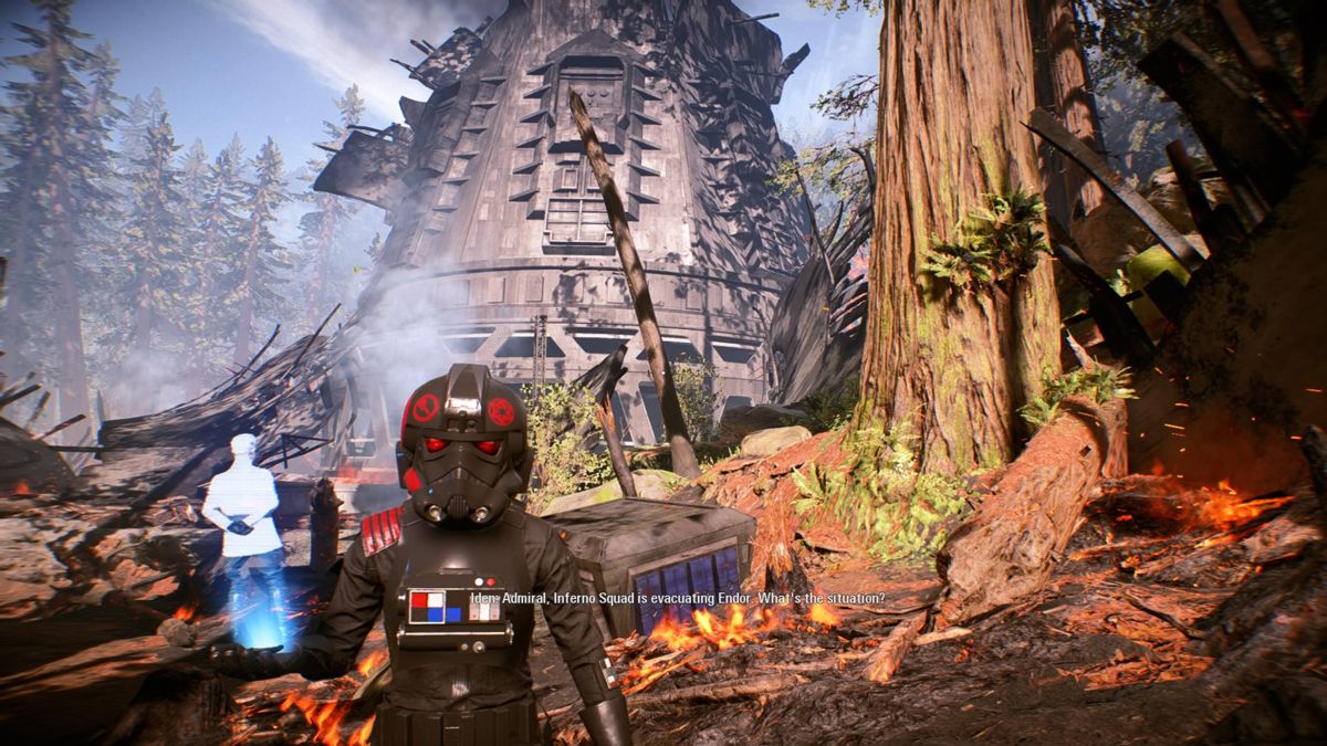 Star Wars: Battlefront II is the sequel to Star Wars: Battlefront in terms of franchise and multiplayer, but unlike its predecessor, this game features an original campaign that bridges a gap in the main canon story between the Episode VI and Episode VII movies. The campaign follows the story of Iden Versio, leader of an Imperial special forces team known as Inferno Squad. You are who Stormtroopers call when they're in trouble, and Rebels know you well enough to fear you. As the story starts somewhere during Episode VI, after a couple of introductory missions you are dispatched on Endor, a satellite-moon where the shield array for the Death Star is, and Han Solo with a group of rebels is about to take it out so that Rebel X-Wings can attack the Death Star. You are too late and the Death Star is destroyed... and as we know from the movie, the Emperor along with it, even though Darth Vader killed him before the explosion, unknown to Iden. As a true believer in the Empire, Iden's plan is to avenge the Emperor and bring the Rebels to their knees.