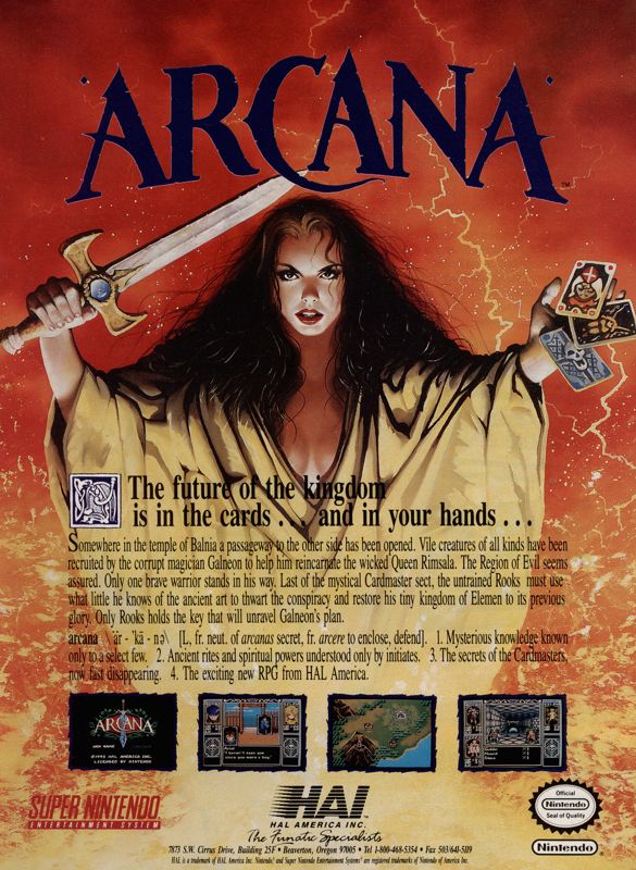 Arcana \är-'Ka-nə\ [L, fr. neut. of arcanas secret, fr. arcere to enclose, defend]. 1. Mysterious knowledge known only to initiates. 2. Ancient rites and spiritual powers understood by only a few. 3. The secrets held by the Card Masters—now fast disappearing.