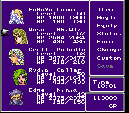 The fourth entry in the Final Fantasy series was released as Final Fantasy II in the West, because the second and the third games were not released there at the time. The game is a Japanese-style RPG with top-down world map navigation, automatic leveling up, and random enemy encounters.