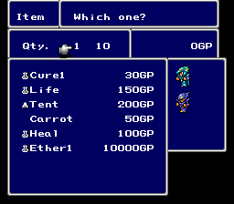 The game introduces a system called ATB (active-time battle). While combat is turn-based in its core, the game does not pause when the player accesses the battle menu. Enemies continue to act in real time regardless of the actions of the player-controlled party. The turns of the participants are calculated depending on their agility rating. Each player-controlled character has a special bar that gradually refills itself; said character may act when the bar is full.