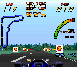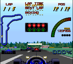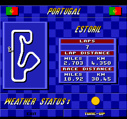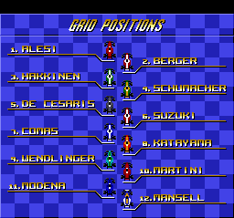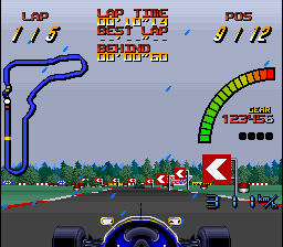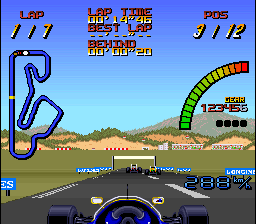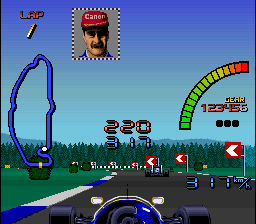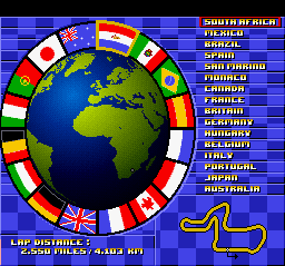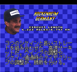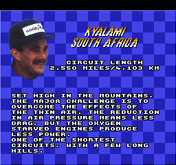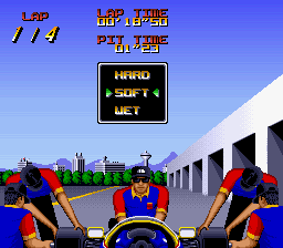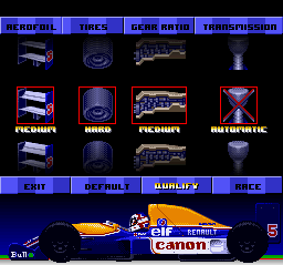 Before each race you can customize wing downforce, gear ratio, tyre selection and fuel load choices – pitstops are a standard feature of the longer races. The 16-bit versions include a unique 'Improve With Mansell' mode, in which a digitized version of Nigel's head appears in the top corner of the screen, offering instructions and praise.