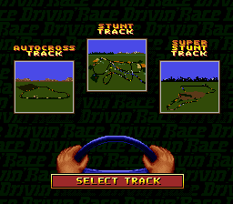 Race Drivin' has three courses, one of which is the track from Hard Drivin'. There is a new super-stunt track, and an autocross course. The player also may choose from three types of cars.