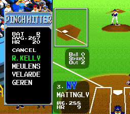Pitching and batting are done from a behind the batter viewpoint. When batting players can sub in a pinch hitter and when on base, a pinch runner, and when pitching can call in a relief pitcher from the bullpen.