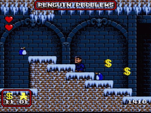 The Addams Family is a platform game based on the characters and settings from the movie (which, in turn, is based on the famous 1960's television series, which in turn is based on Charles Addams cartoon of the same name, which was featured in the magazine, The New Yorker, in the 1930s).