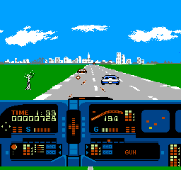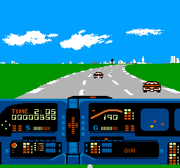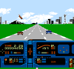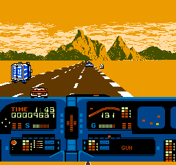 Riding in KITT down the highways, you'll be trying to beat the clock to reach your destinations mostly. KITT, however is the car of the future and doesn't go about unarmed. A Gun weapon, Missiles, Laser and a Jumping ability will all help you. KITT absorbs damage in it's internal shielding and once that's gone, you lose a life. However Devon has contacted other agents of FLAG who will be on the same roadways and will drop power-ups to restore ammo and shields to KITT.